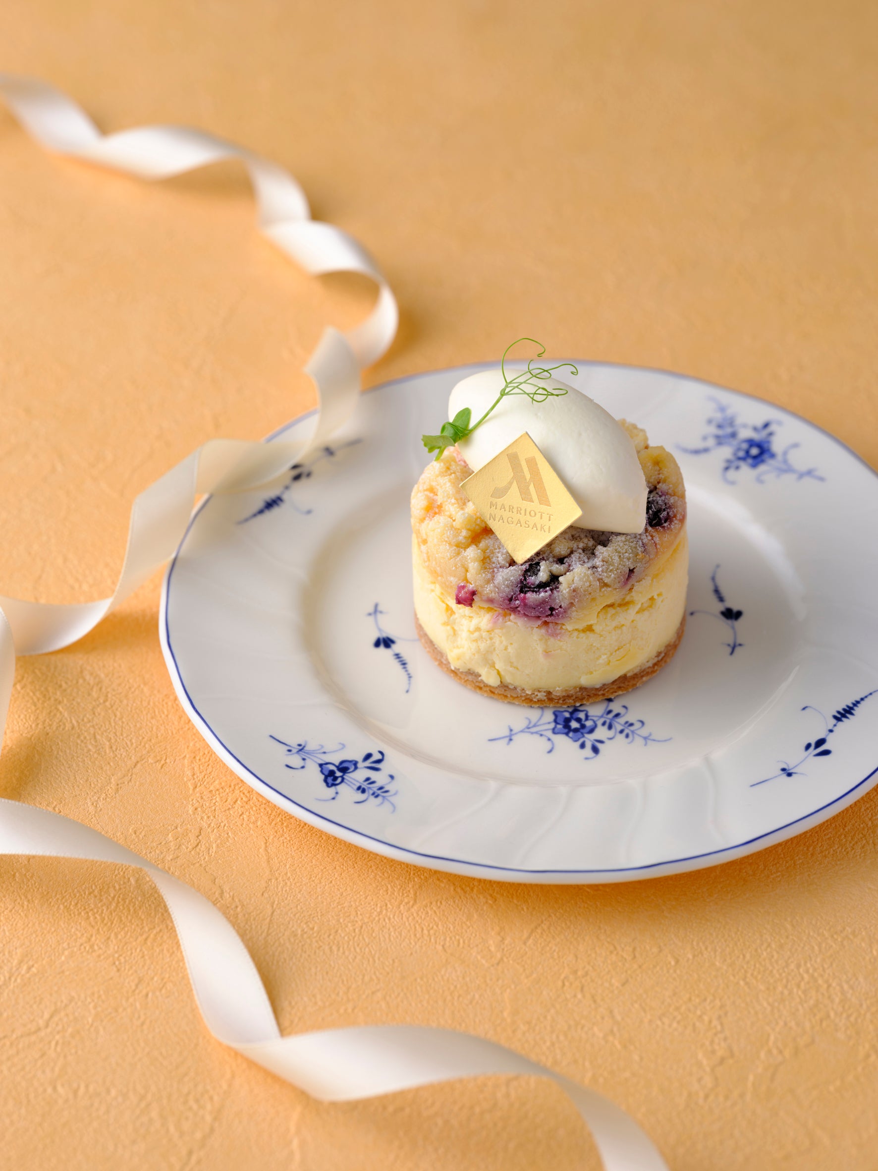 チーズは、クリームチーズとサワークリームを使用し、長崎県産ブルーベリーをコンフィにして生地に練り込んだ、ベイクドタイプのチーズケーキ
