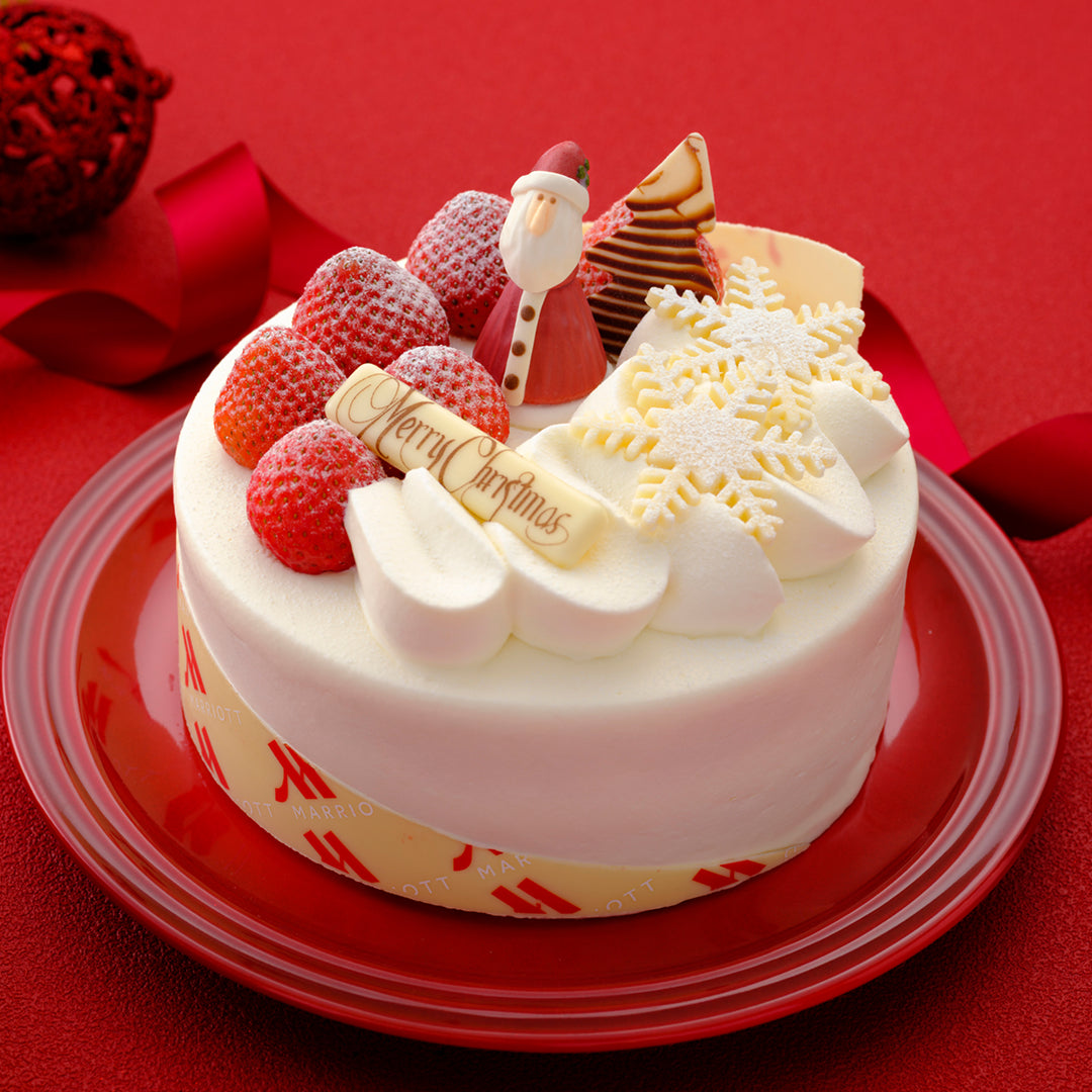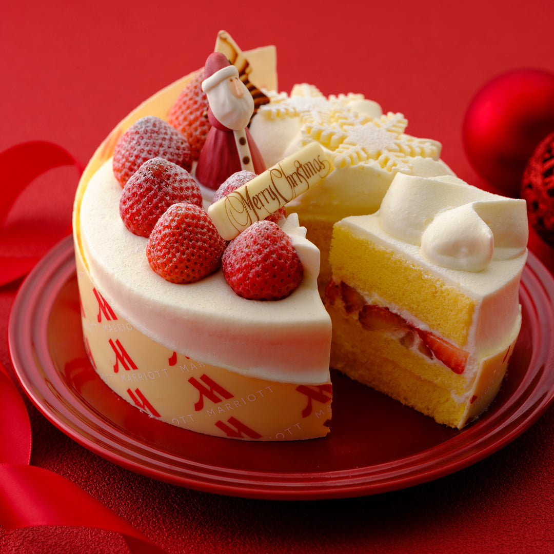側面にはマリオットのロゴ入りホワイトチョコの帯を施した、長崎マリオットXmasの特別なショートケーキです。